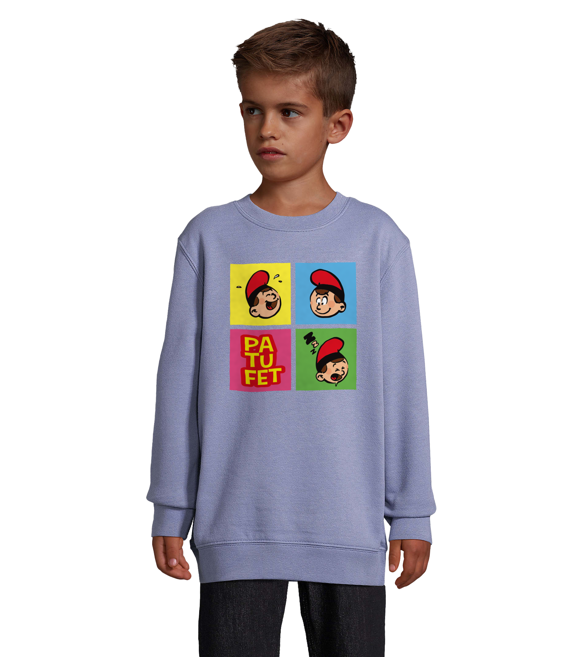 Sweat col rond inspiré du Pop Art Warhol, décliné autour des humeurs colorées de Patufet.
